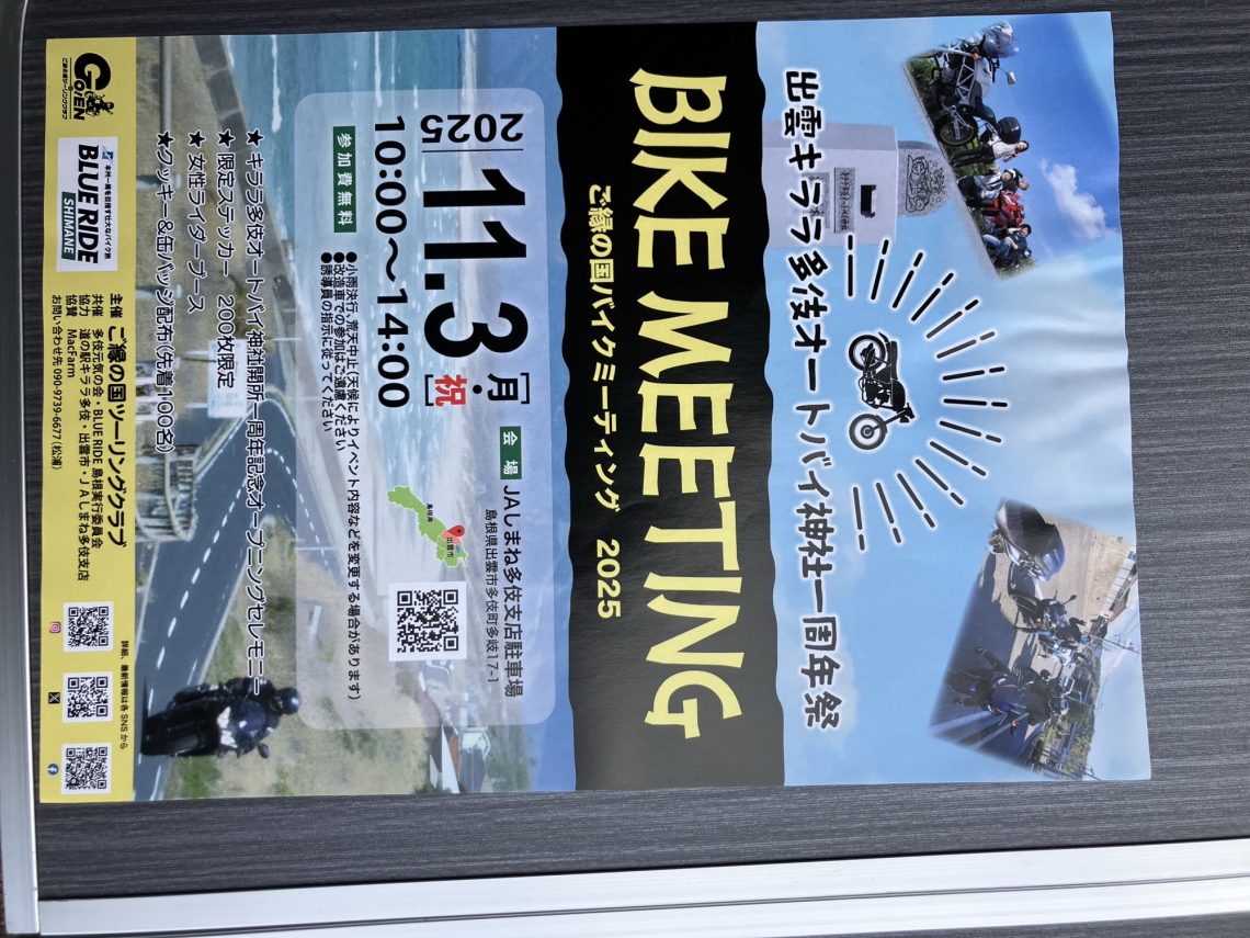 キララ多伎オートバイ神社一周年記念イベント、ご縁の国バイクミーティングを11月3日開催。