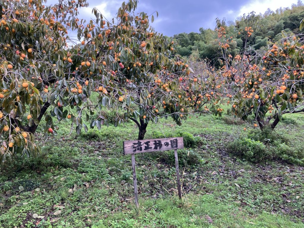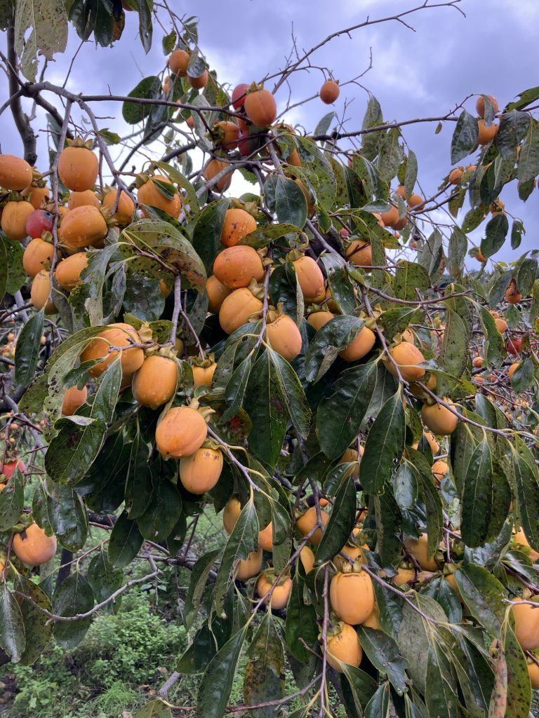 多伎元気な会で管理しています、「清正柿の園」の11月1日のようすです。まるでぶどうのような西条柿です。